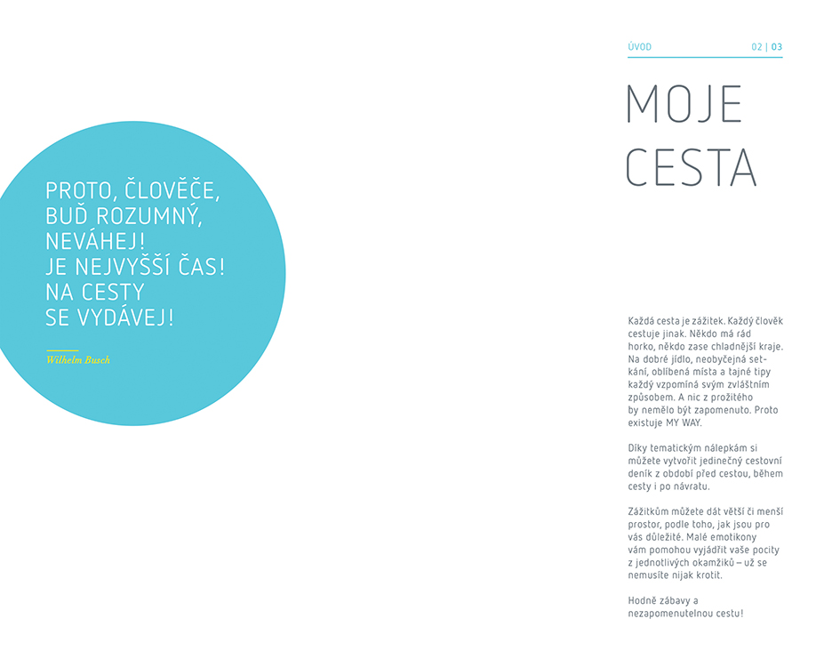 Každá cesta je zážitek. Každý člověk cestuje jinak. Někdo má rád horko, někdo zase chladnější kraje. Na dobré jídlo, neobyčejná setkání, oblíbená místa a tajné tipy každý vzpomíná svým zvláštním způsobem. A nic z prožitého by nemělo být zapomenuto. Proto existuje MY WAY.